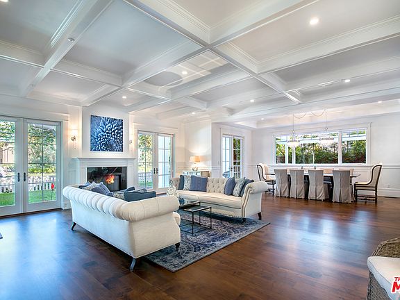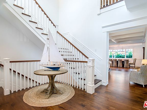 Stunning Santa Monica home on coveted corner lot boasts a classic Hamptons-style marvel. Impressively designed this 3-story floorplan was built around the art of entertaining. Guests are greeted by an exquisite 2-story foyer with walnut hardwood and wainscoting throughout. Coffered ceilings and 4 sets of French doors adorn the living and dining rooms. A Chef's kitchen with Subzero & Wolf appliances and kitchen bar that leads to the family room, where guests will find a fireplace and welcoming wet bar opening to the backyard. Downstairs, you will find a library/game room, media & craft room, full white marble kitchen, 2 en-suite bdrms, wine tasting room & cellar. Take the elevator up to one of the 4 en-suites bdrms boasting walk-in closets, full baths & treetop views. The rear slate patio can be used for private outdoor cocktail parties before retiring to the dining room where the French doors allow guests to experience the grandeur of the mighty Magnolia trees that grace the grounds.