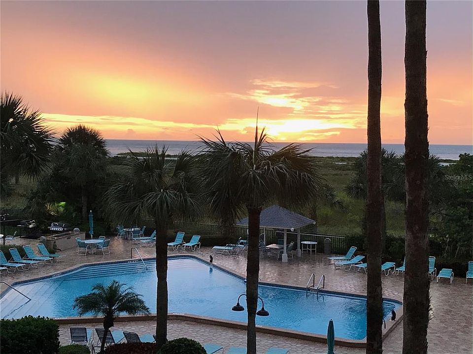 DIRECT WEST FACING, GULF VIEW, PRIVATE BEACH ACCESS, FULLY UPDATED INTERIOR...AT A TRULY UNBELIEVABLE VALUE! This SIMPLY STUNNING 1 bed / 1.5 bath TURNKEY CONDO in LANDMARK TOWERS packs a punch and it could be YOURS. Inside and out, feel confident that you have ALL YOUR NEEDS TAKEN CARE OF for EASY BEACH LIVING. Reinforced concrete building construction. Impact windows and sliders throughout the unit (2019). Electric roll down balcony solar shades (2020) for all day enjoyment of the oversized balcony (which by the way, truly feels like you could be in a corner unit). Lovely, light and bright color palette. Tasteful, porcelain floor tile throughout all living space and ceramic tile in the full bath (zero carpet anywhere). HVAC with Ultramax EZMax UV (2021). Entire new electric panel w/whole unit surge protection (2021). New water shut off valve (2022). Walk in master bedroom closet with Closets By Design built in shelving (2017). Expanded width pocket door from the master bedroom to the ensuite bathroom (PS. there is a water view from the shower too!) Soft close kitchen cabinets. Crown molding in the living room and bedroom. Solar shades on the living room windows. Black out drapes in the living room and master bedroom. See Feature Sheet for additional details, too many to mention! Located on the 3rd floor, the unit is PERFECTLY POSITIONED within the building, offering GORGEOUS WATER VIEWS and the most AMAZING SUNSETS you could ever imagine, yet just the right elevation to feel engaged with the surroundings and views of the pool, hot tub, tennis court (pickleball played at Tower 2) and beach walkway. CONVENIENT ACCESS to the elevators (2), trash chute, laundry (each floor has a full laundry room) and storage locker across the hallway, and just steps from the east facing oversized patio with loungers and tables overlooking the Intracoastal Waterway and Shoppes at Sand Key. The unit comes with 1 assigned outside parking space located close to the lobby entrance. Plenty of guest parking. Gated access. Coded lobby. 24/7 security and management onsite. Bike room. One month minimum rental. Pet friendly (1 dog or cat up to 20lbs). You won’t want to leave the island, but if you have to, it is easy access to anywhere in Pinellas, Tampa and local airports. Be sure to VIEW THE 3D TOUR link for an immediate and true showing experience, or schedule your in person visit today. You can truly have it all with this easy living, slice of paradise property. Flip flops required!