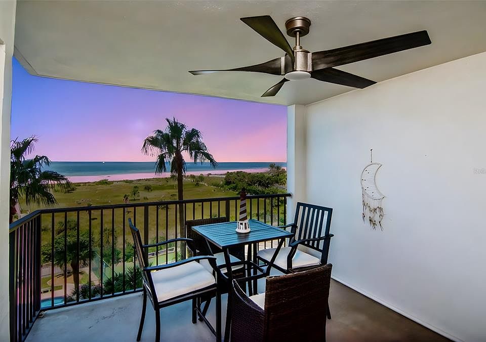 Welcome to Landmark Towers, one of Clearwater Beach’s premier Gulf-front communities. This FULLY FURNISHED beautifully updated sixth-floor, one-bedroom, one-and-a-half-bath condominium offers unobstructed views of the Gulf of Mexico and a bright open-concept design perfect for coastal living. The interior features durable ceramic tile flooring throughout, quartz countertops, and Whirlpool stainless steel appliances. PGT Cat-5 hurricane impact windows—installed in 2022—provide both security and clarity, complemented by motorized rolling blinds that frame the stunning Gulf views. Step outside onto your private balcony and enjoy nightly sunsets over the water. Convenience is unmatched, with a shared washer and dryer located directly across the hall, along with a dedicated storage locker (Unit #4). The property includes assigned private parking as well as additional guest parking for visitors. Landmark Towers offers secure entry, a well-equipped fitness center, and an ideal location just minutes from world-class dining, shopping, and top Clearwater Beach attractions. Whether used as a full-time residence, vacation retreat, or short-term rental for additional income, this condo delivers the ultimate beachfront lifestyle.