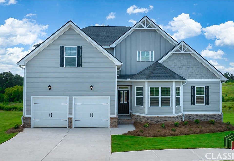 The Gentry plan, Gorgeous Two-Story New Construction Home on a basement in the well sought after Madison Lakes Subdivision. Enter your two story foyer to hardwood floors throughout. Enjoy your beautiful dining room with coffered ceilings and separate butler's pantry while entertaining guest. Cozy kitchen with an open concept so you can easily interact with others in your family room which features a gas log starter fireplace. Fabulous kitchen with gorgeous white cabinets, a brick pattern backsplash, granite countertops, a granite kitchen island with pendant lights, stainless steel appliances: wall oven, microwave, gas range, dishwasher, and refrigerator. Enjoy your breakfast area with bay windows and access to your rear covered deck. Master on main with bay windows, tray ceilings, a ceiling fan, and double doors leading to your spa-like master bathroom with separate his and her vanity, tile shower, tile surround tub, tile floors, and walk-in closet. Laundry room comes with washer and dryer. Generous secondary bedrooms with ample closet space and prewired for ceiling fans. Nice size loft with open railing. This home is built with a pest system to help prevent pest without a servicing company entering your residence. This home also comes with DEAKO light switches, a smart home system, and 2-10 Home Warranty. The community amenities include a clubhouse, tennis, children playground, picnic area, golf cart trails, lakes, gym, and a pool. Just 2 minutes from I-20, Less than an hour away from the Atlanta Airport, 30 minutes from Athens, 10 minutes from Downtown Madison, 5 minutes from Walmart and more. Walking distance to the Farmview Market.