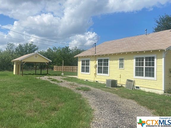 Cute starter home or downsize for easy keep. Fresh paint inside and outside. This home comes with a refrigerator, gas range, and dishwasher. There is a nice covered porch for daily "front porch sittin'". Located in a Quiet area on the edge of town but only minutes from HEB and schools. Extra large yard that is fenced on two sides. Room to run for pets or play area for kids - or both! Perfect for outdoor barbequing. Come see now.