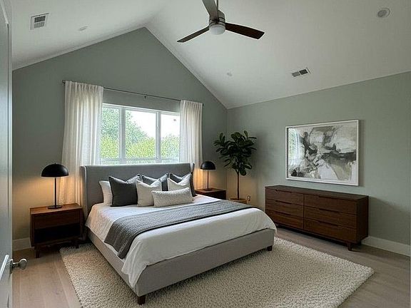 Contemporary architectureHigh-end finishesStainless steel appliancesCathedral ceilingSoaking tubDual walk-in closetsPrivate covered patio
