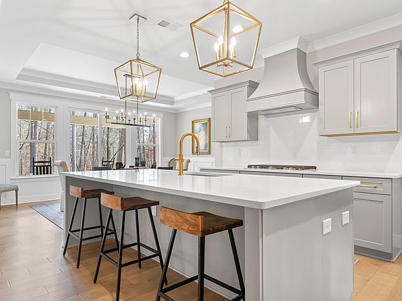 Peaceful golf course viewsRoomy three-car garageSpacious primary suiteLarge islandPlantation shuttersCustom lighting and mirrorsTankless water heater