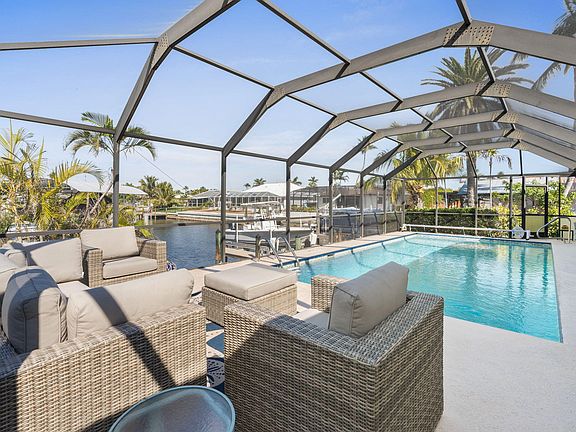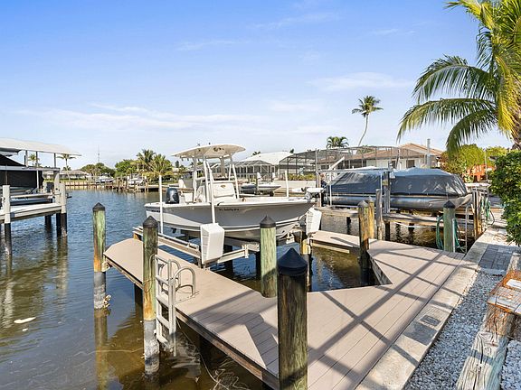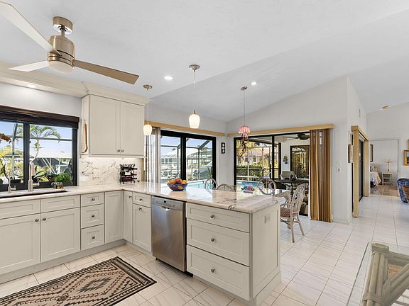 Find your dream home right in the heart of Marco Island. Set on an oversized corner lot surrounded by lush landscaping and fruit trees, this inviting 3-bedroom, 2-bath residence offers a comfortable layout that feels both open and welcoming. The kitchen, updated in 2018, connects easily to the living room where you can take in peaceful canal views through large windows that fill the space with light. The primary suite is spacious and relaxing, with vaulted ceilings, 24'' tile floors, a generous walk-in closet, and a beautiful bathroom featuring a soaking tub, walk-in shower, and double vanity. Tile floors run throughout the home, giving it a clean, low-maintenance style that fits the Marco lifestyle perfectly. Step outside to your own private retreat. The pool area overlooks the canal and includes a private dock—ideal for boaters, anglers, or anyone who loves to be on the water. With less than a 10-minute ride to the Marco River, you'll have easy access to waterfront dining, fishing spots, and some of the best sunsets on the coast. Built with quality and peace of mind in mind, the home features a metal tile roof, new impact windows and doors (except on the covered lanai, which is protected by a hurricane shutter), and two hot water heaters. The two-car garage offers plenty of extra storage space. This is a rare opportunity to own a home that truly captures the best of Marco Island living—comfortable, beautifully maintained, and ready for you to enjoy.