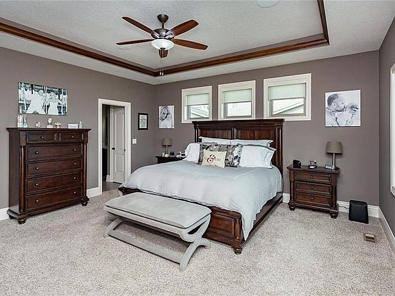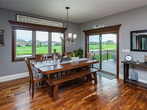 Custom built and attention to detail are evident backing to Otter Creek Golf Course. Curb appeal is a level 10 with the stately exterior finishes and gorgeous professional landscaping. Walking through the front door into the foyer you will instantly notice the trim details, crown molding and tall ceilings. Family room features a beautiful fireplace surround and built ins. Open to kitchen with huge island/breakfast bar, walk in pantry, 2 ovens (wall + slide in) and backsplash. Large master suite with tile shower and his/vanities and walk in closet opens to laundry room. 2 spacious spare bedrooms with full bath also on 1st level. Large covered deck off of eating area overlooking pond and course. Lower level is set up for entertaining and relaxing with 2nd fireplace, wet bar, pool table and 2 additional bedrooms. Walkout to stunning patio and custom firepit. Large 3 car garage is heated and epoxied.