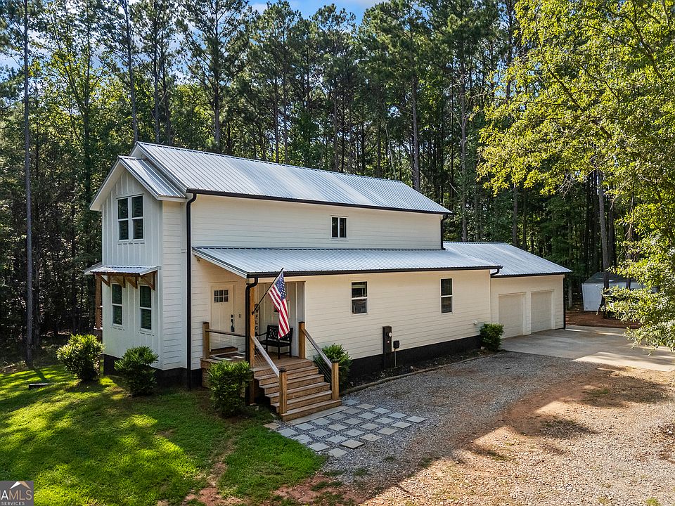 Tucked away on 2.7 wooded acres yet just minutes from Highway 78, this charming home offers easy access to Monroe, Athens, and Bethlehem while providing the seclusion and space you've been looking for. Downtown Monroe is less than 3 miles away and features locally owned shops, seasonal festivals, outdoor concerts, and excellent dining. A welcoming front porch with a stained wood ceiling opens into a light-filled floor plan with stunning white oak floors throughout the main level. The living room flows seamlessly into the dining area and kitchen, designed for both everyday living and entertaining. The kitchen serves as the heart of the home with quartz countertops, custom cabinetry, floating shelves, stainless steel appliances, and a large island. Also on the main level are a half bath and a spacious mudroom/laundry room with built-in cabinetry and access to the oversized two-car garage. The owner's suite is complete with a walk-in closet with built-ins and an en-suite bath featuring double vanities and a tiled shower. Upstairs, you'll find a generous loft area or flex space, along with two oversized bedrooms, each with its own private bathroom with tiled floors and tiled tub/shower combo. The full finished basement expands the home with a kitchenette, a large living/flex area with a generous sized storage closet, a bedroom, and a full bath with a tiled shower. Step outside and enjoy the peace and privacy of your wooded surroundings from the covered deck or extended patio. With its thoughtful design, high-end finishes, and an unbeatable location close to shopping, dining, and entertainment, this home offers the best of both worlds, peaceful living with quick access to everything.