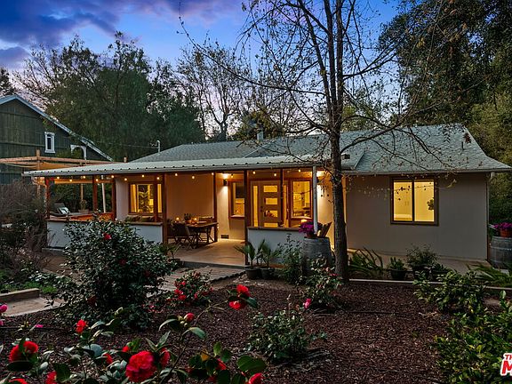Discover this stunning, fully remodeled (see Docs for Improvements) 3-bedroom, 2 bathroom single-level contemporary home nestled in a picturesque country setting, complete with a seasonal stream that adds a touch of tranquility to this very private lot. Set on nearly half an acre of flat land, this charming property offers room to add on, develop or just enjoy the extra breathing room. This impressive Scandinavian design entertainers home features a gourmet kitchen with an open floor plan that seamlessly flows to a spacious dining area and inviting living room. The spacious primary bedroom includes a sizable walk in closet, providing plenty of room for all of your wardrobe and personal belongings. The generous second bedroom offers ample closet space while an adjacent private office is perfect for those working from home or in need of a quiet study space. This office is equipped with a Murphy bed, which smartly maximizes the utility of the space acting as a 3rd bedroom when needed. This flexibility ensures that the space can serve multiple purposes without compromising on style or comfort. Head outside to enjoy 3 charming patio / decks complete with a fire pit, perfect for creating unforgettable memories with family and friends. Is that a dedicated yoga deck or morning coffee retreat? Or both? Enjoy the added bonus of a detached 1-bedroom, 1-bathroom ADU with full kitchen and private deck overlooking a seasonal stream and the open space of Bonnell Park which is perfect for guests, a home office, or rental income. Plenty of storage awaits in the 10x10 basement and over sized garden shed. The home is adjacent to the Red Rock Canyon Park entrance where world class mountain biking and hiking await you. Conveniently located just 12 minutes from Calabasas Commons for all your shopping needs, 4 minutes to downtown Topanga, 15 minutes to PCH and the beach, this home offers the perfect blend of serene country living and quick access to all modern comforts and amenities. The property includes 2 APN's #4438008008 12,836 ft and #4438008035 5,601 ft. Total 18,437 ft. (0.42 acres) per public record.