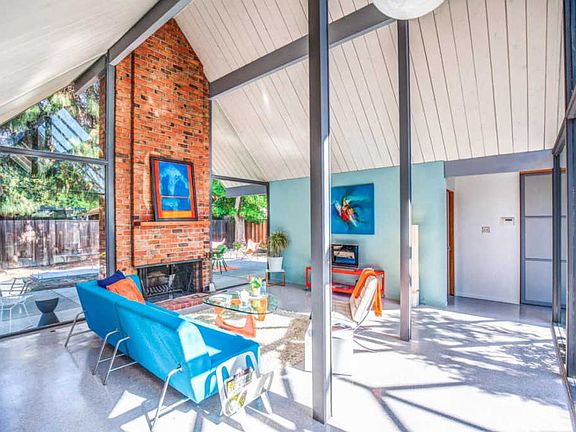 You finally have a rare opportunity to own a Claude Oakland Architects Double A-Frame Atrium model Eichler -- perhaps the most sought after and iconic of all Eichler homes. The high-pitch roof design and open atrium has become an architectural marvel for how it brings volume and light into Eichler living. This home has been kept very original so you can enjoy it today or as the base to start remodeling to your own personal taste. New VCT tile covers the radiant heated concrete floor and the warm mahogany wood paneling is still in great shape. All of the original globe lights are still in place and amazingly all of the closet sliders are in perfect condition. Create a stunning remodel from this original Eichler home or live in it today to enjoy the Mid-Century Modern lifestyle!