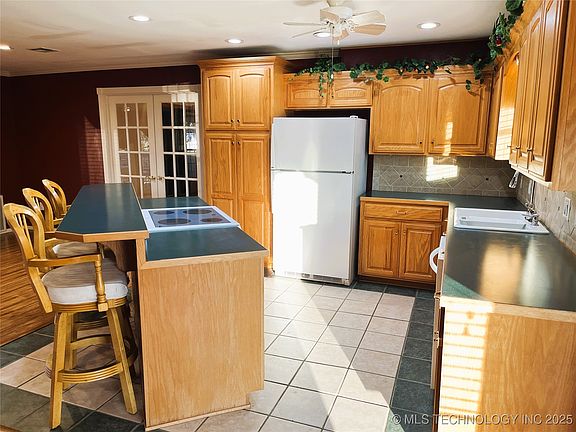 Beautifully decorated, 3 BR, 2 Ba, 2,100 sq ft (Per Mayes County Assessors Records) family home tucked away on a low traffic, dead-end street with vacant land adjoining the back yard, yet convenient to schools, churches, park, restaurants, businesses, about 10 minutes from MAIP and Lake Hudson. Upgraded "Open-Concept" with "Eat-In" kitchen and custom island (incl. 3 matching bar chairs) and custom cabinets with pull-outs etc., bay windows and large dining area are sure to please. Large living area w wood-burning fireplace, large multi-purpose room, (laundry room / office / craft room), central HVAC with ductwork in ceiling, 8-year old roof, insulated vinyl framed windows, connection panel for back-up electrical generator, purified drinking water system and much more make this house a great family home. The spacious Primary Bedroom "Suite", spanning across the west end, has plenty of room and lots of closet space. Currently priced-to-sell in "AS-IS" condition. The entire perimeter of the home has been completely piered (with documentation), and it currently needs some Slab and Plumbing work underneath in order to qualify for some loan types. Must see to appreciate this opportunity to make this beautiful and spacious home your own.