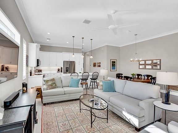 Rarely available, Bermuda inspired Golf Cottage resale built by GHO homes. Top of the line finishes, lovely neutral decor, third bedroom was den, now has closet. Brick paver drive porch, patios, whole house generator and so much more Amenities with OH membership. Sizes are approx/subj to error.