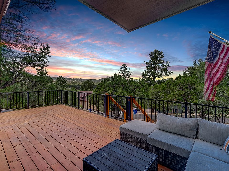 Beautiful 3bed, 3 bath 3100+ sq ft home nestled in the ponderosa pines of Haisley Homestead, just minutes from downtown Prescott, AZ. This home lives like a one story with the bedrooms, kitchen, and living room all on one floor! Boasting of wonderful views of Thumb Butte and Granite Mountain, this home has wonderful indoor and outdoor living spaces perfect for a relaxing evening or to host all of your friends and family! Recently updated, you'll enjoy a large open concept floor plan with hardwood floors, large living room with wood burning fireplace, picture windows allowing for lots of natural light, newly remodeled kitchen and bathrooms, a den and an oversized master and ensuite bath with walk in closet. In addition to the three bedrooms, there is an office/gym that can be converted to a fourth bedroom. Downstairs offers an additional large family living space and guest bath. Enjoy the outdoor patios and deck spaces! Community amenities include a pool, clubhouse, and tennis courts. The owner prefers to lease the property furnished, but is willing to deliver the home vacant. Minimum 6 month rental! Call today for a tour.