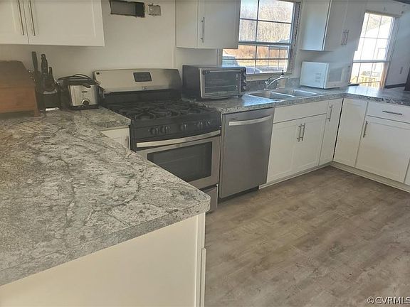 Great location with privacy, this is a must see! Open floor plan, 3 bedroom, 2 bath, detached garage and storage shed on 14.41 acres. New kitchen cabinets and counter top. The primary bath has a beautiful tub and double sink, separate toilet and shower area. New laminate flooring in the kitchen, dining room, eat-in area, living room, primary bedroom and primary bath. New roof in 2022. All appliances convey.