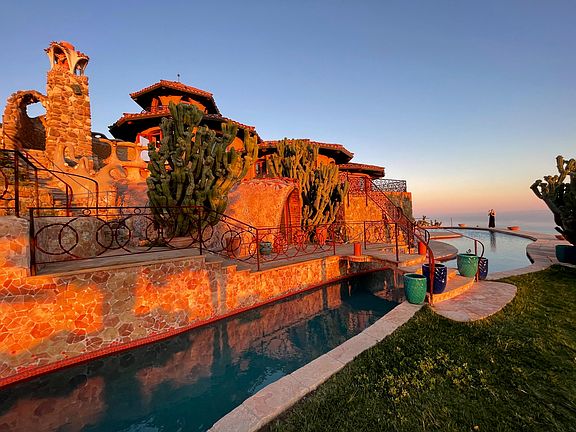 Nestled in the unparalleled beauty of Montecito, ''Castle in the Sky'' emerges as a beacon of architectural innovation and creative sanctuary, offered at $45,000 per month. This extraordinary estate, conceived by the esteemed designer Frank Robinson and inspired by the legendary architect Antoni Gaudi, transcends the traditional confines of luxury living to offer a profound experience of art, inspiration, and sustainability. Crafted with adobe brick, celebrated for its exceptional insulation properties, ''Castle in the Sky'' exemplifies sustainable luxury. The estate, spanning 3,412 square feet, boasts three bedrooms, four full baths, and a versatile studio apartment, each space a testament to Robinson's visionary design and Gaudi's influence. The intricate tile work and breathtaking ceilings in each room are not merely elements of decor but vibrant expressions of artistic vision, creating an immersive living museum that captivates and inspires. The essence of Gaudi's inspiration is palpable throughout "Castle in the Sky," from the fluidity of forms and the innovative use of materials to the integration of the estate with its natural surroundings. This Gaudi-inspired approach transforms the property into a dynamic piece of art, where the boundary between structure and nature blurs, inviting those within to explore the endless possibilities of creativity and design. Perched atop Santa Barbara, the estate offers unmatched panoramic views that stretch from Point Mugu to Point Conception. These vistas serve not only as a backdrop to daily life but as a source of endless inspiration. The changing light, the vast horizon, and the twinkling lights of Santa Barbara at night stimulate the imagination, making "Castle in the Sky" an ideal retreat for artists, writers, and visionaries seeking a muse amidst the beauty of nature. Complementing its artistic and architectural marvels, "Castle in the Sky" is a model of eco-conscious living, powered by solar energy and equipped with a private well. The estate's sustainable features, including a fully completed swimming pool and a secluded hot tub grotto, reflect a commitment to harmonious living with the environment. The addition of a two-car garage with an EV charging station underscores the property's blend of luxury, convenience, and environmental stewardship. At $45,000 per month, "Castle in the Sky" invites a tenant who seeks more than a home; it offers a unique living experience, where the legacy of Gaudi and the vision of Frank Robinson converge to inspire and nurture the creative spirit. This is not just a place to reside but a space where every moment is an opportunity for inspiration, surrounded by the majesty of art and the unparalleled beauty of Santa Barbara's landscape.