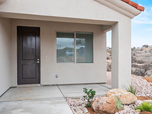. Click on 3D tour and floor plan available for your convenience. Dont be shy, make an offer. Motivated Seller!Spectacular New Construction 2023 of a 3/BR 2/BA home with curb appeal. Step inside to a great open living area featuring 9 ft ceilings following an ample kitchen with island, spacious cabinets, stainless steel (including refrigerator)appliances countertops are granite Beautiful tile walk-in shower and dual vanities in primary bath. Beautiful desert planting with irrigation system, surrounded by natural rock and gravel. stairs with hand rail leading up to the home. Backyard offers a wide-open space. Great location, easy access to freeway I-19, schools, fitness center, walking trails. Complete and ready to move in!