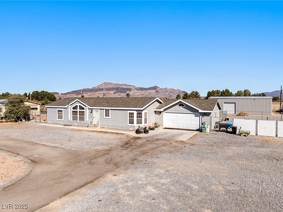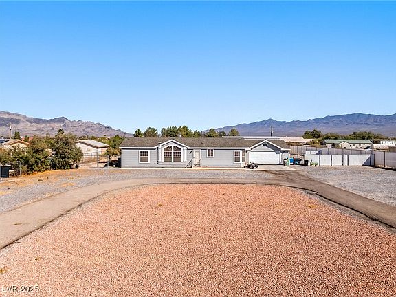 Welcome to your private oasis in Rancho Del Sol, Pahrump NV! This beautifully maintained 3-bedroom, 2.5-bath home offers 1,522 sq. ft. of updated living space on over 1.14 acres of fully fenced land. Inside, you’ll love the functional floor plan with a spacious great room featuring a cozy wood-burning fireplace, and a chef’s kitchen equipped with stainless steel appliances, island, pantry, breakfast nook, and butler’s pantry. The oversized primary suite features a large walk-in closet, separate tub and shower, and dual sinks. Each secondary bedroom also offers walk-in closets and ceiling fans. This home is a true retreat with mountain views, a full-length back patio, RV hookups, circular driveway, and a 30x50 detached shop with 14-foot tall side walls perfect for projects, toys, or storage. All-electric systems, private well & septic. No HOA, no restrictions. Move-in ready and just minutes to town with an easy Vegas commute. Don’t miss this opportunity to own land, space, and serenity