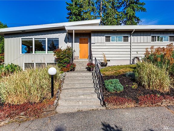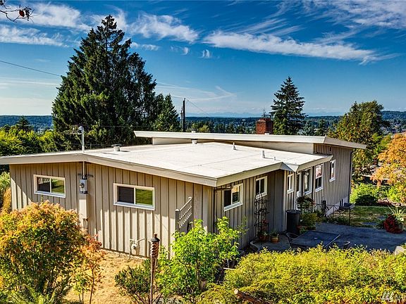 Mid-century marvel perched on Puget Hill. This 4-bed/2.25-bath charmer sits on sprawling ~17k sqft lot (w/ patio) inundated by N + NW views of the mountains + city. Main-level living w/ 3 beds, 1.5 baths, kitchen, + laundry. Large picture windows fill living room w/ sunny vistas, + a massive kitchen w/ eating space. Finished daylight basement w/ bonus room + MIL potential. Outbuildings give great storage capacity + huge wraparound driveway offers lots of parking. Add a carport/deck on N side!