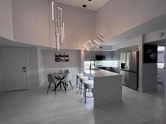 Quartz countertopsBright open floor planModern cabinetryLarge tile floorsSpacious living-dining area