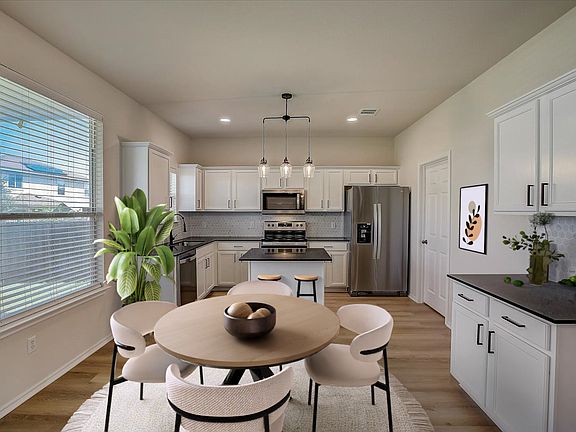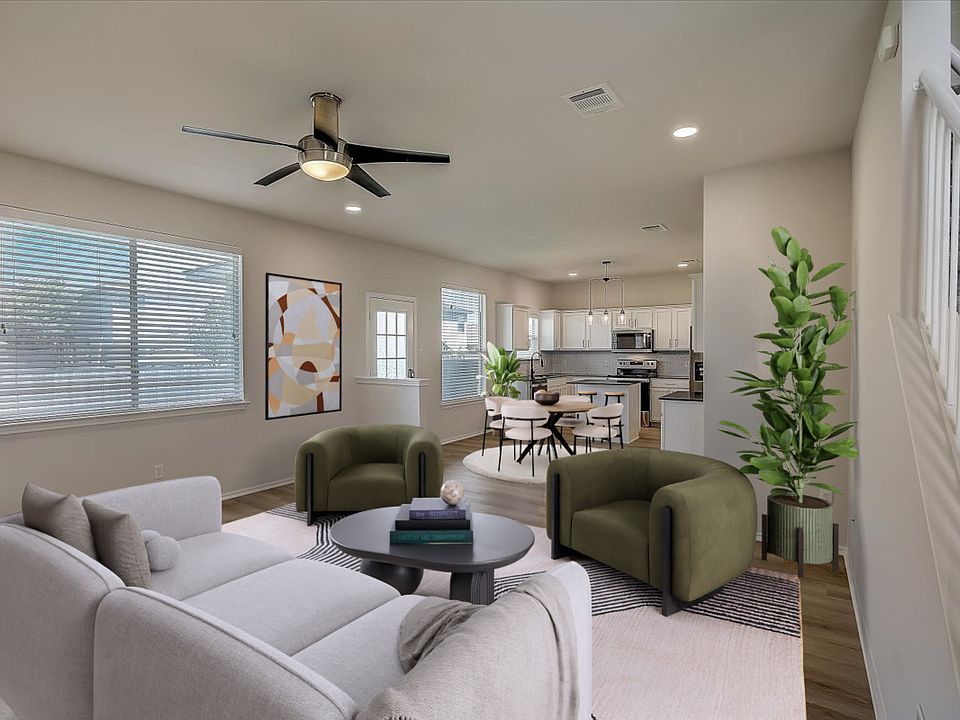 This beautifully maintained 3 bedroom, 2.5 bath home in Presidential Meadows offers an open-concept living, dining, and kitchen area, perfect for modern living. The versatile second living area upstairs is ideal for a home office or entertainment space. Enjoy your morning coffee on the inviting upstairs balcony with French doors. The home has seen several updates, including a recently replaced roof, updated appliances, fixtures, and flooring throughout. Fresh interior and exterior paint, a stylish tile backsplash in the kitchen, and updated light fixtures enhance the home's appeal. LED can lights have been added in the living and kitchen areas, and the primary bath now features a remodeled shower, while the second bath boasts an updated tile surround. The backyard is spacious, providing plenty of room for play or outdoor gatherings, and the added landscaping enhances the curb appeal. Located within walking distance to the community park and Presidential Meadows Elementary, this home is ready to welcome its next residents.