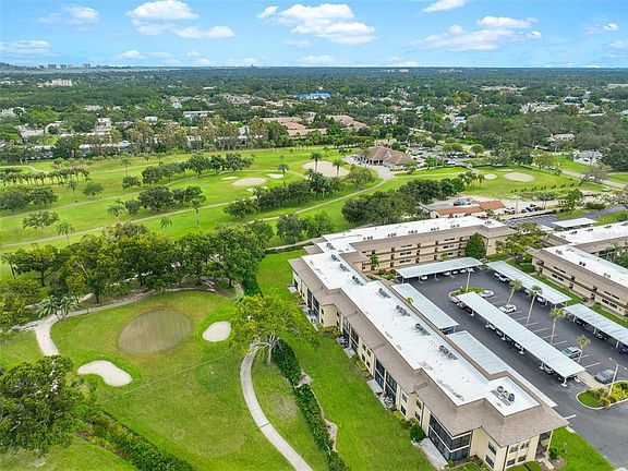 Golf Anyone? Welcome home to this STUNNING END/CORNER CONDO, located directly next door to the Largo Executive Golf Course, allowing you front row seats to the 17th Green and the 18th Fairway. As you enter this gorgeous and updated condo, you’ll fall in love with the kitchen design with the luxury white quartz counters, classic navy-blue backsplash, inviting breakfast bar with cutting board top, and modern pendant glass lights. Kitchen features include Frigidaire Gallery Stainless Steel appliances, enhancing the modern design. A Bosch washer and dryer set, with inclusive custom shelving, is located in a dedicated space within the kitchen. The breakfast bar separates the kitchen and dining room and serves as a multi-purpose entertaining buffet area. The original floor plan for this spacious 1415 sq ft condo was for a 3 bedroom, 2 bath dwelling; the previous owner transformed it into a two-bedroom design, creating a primary suite that is both expansive and distinctive. The redesigned primary suite features an ensuite with a step-in shower, walk-in cedar closet with cedar wood planks, and a private sitting area to enjoy relaxation or watch the golfers on the 17th hole. One will also appreciate the smart motorized blinds that can be operated from your iphone. The 2nd suite in this split bedroom plan also offers an ensuite with a quartz counter top vanity, bathtub and shower combination complete with a tempered glass enclosure, and walk-in closet, as well as a linen closet. The spacious living room offers another view of the golf course and 18th Fairway, and is accessible to the enclosed wrap around balcony. This balcony is also accessible from the 2nd bedroom suite. In addition to the many beautiful and visible updates, such as lighting, flooring, painting, etc., other updates have recently been completed. Some of these include electrical panel 2022, windows & doors 2021, AC 2021, water heater 2017, and balcony hurricane windows 2015. This meticulous condo also conveys with a covered parking spot and an additional storage unit. NON-FLOOD AND NON-EVACUATION AREA. In addition to walking next door with your clubs or spending time with friends at the golf course clubhouse, driving range, or pro shop, you can also stroll to Publix, restaurants, and other conveniences. Gulf Beaches are just a short drive away. Downtown St. Petersburg, the Pier, theaters and eclectic restaurants are also easily accessible. In addition, this active 55+ community offers a heated pool, tennis & pickleball courts, clubhouse, fitness center, and so many other activities for one to enjoy and appreciate. Villas De Golf is a resort style community that offers an opportunity to enjoy a relaxing and stress-free lifestyle.