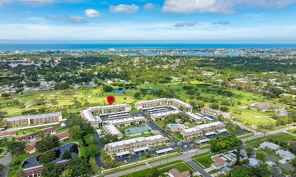 Welcome to Villas de Golf, a community where retirement living meets relaxation right beside the scenic Largo Executive Golf Course. Just two miles from the sugar-sand shores of Indian Rocks Beach, this vibrant 55+ community blends leisure with recreation in the best Florida fashion. This first-floor 2-bedroom, 2-bathroom condo offers over 1,000 sq. ft. of comfortable living, with a carport just steps from the front door. Pride of ownership is clear throughout this well-maintained home. The kitchen features a spacious passthrough to the dining and living room, making entertaining effortless. An enclosed sunroom overlooks the picturesque fairway, with lush shrubbery adding extra privacy. The owner’s suite enjoys direct access to the sunroom, a walk-in closet, and its own ensuite bath. With a split bedroom design, the second bedroom also has a private ensuite—ideal for hosting guests. At Villas de Golf, every day feels like a getaway. Residents enjoy a wealth of amenities, including a heated pool, tennis, pickleball, and shuffleboard courts, plus two clubhouses—one with billiards, TVs, and gathering spaces, and another with a banquet hall and full kitchen for events. HOA fees cover water, sewer, trash, exterior maintenance, cable TV, and internet, allowing for stress-free living. For added flexibility, rentals are permitted after one year of ownership with a minimum six-month lease. (Sorry, no pets.) The location is unbeatable—close to the SW Largo Recreation Center, grocery stores, shopping, restaurants, Tampa Bay sporting events, airports, bus stops, and the beautiful Florida Botanical Gardens. Embrace maintenance-free living at Villas de Golf—bring your clubs, settle in, and enjoy the ultimate retirement lifestyle!