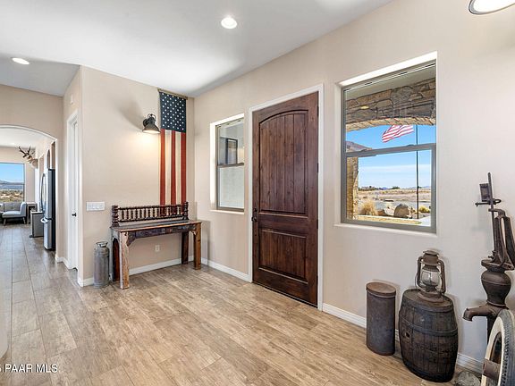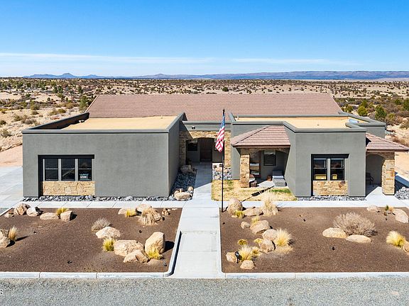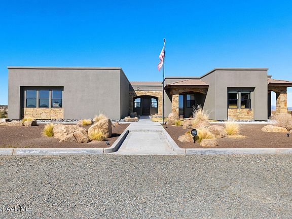Welcome to this gorgeous Las Vegas Ranch Estate! Step in to this beautiful 1 story 3729 sq ft home, with an oversized 2760 sq. ft. Shop for ALL the toys, spectacular views, all backing State Land! On 31.27 acres, 30+ GPM well, this property is ranch living at its best. Very private. Only the gorgeous 360 degree views! All electric, this home is very energy efficient. Wonderful open chef's kitchen with large island, knotty alder cabinets and upgraded stainless appliances. Living room includes a wet bar, and a drop down projector and screen for movie night! In addition to the large covered patio, there is a lower level outdoor space perfect for taking in the EPIC views of the San Francisco Peaks and Granite Mountain. This home and land have so much to offer. This home is also USDA eligible.Neighborhood highlights-Las Vegas Ranch is known for its picturesque surroundings and a strong sense of community. Enjoy the tranquility of rural living while being just a short drive away from local amenities, recreational activities and scenic trails. This is a rare opportunity to own a piece of paradise in a privately gated exclusive area.