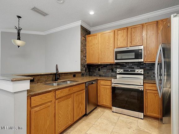 PRICE ADJUSTMENT! Low Condo fee and plentiful amenities. FIRST (ground) LEVEL, NO STAIRS, CORNER, END unit with green space outside the screened in porch. This Open Floor-Plan has fresh neutral colors throughout, Travertine floors, granite counters, SS & black appliances, slate brick backsplash, 42-inch oak cabinets, under-counter lighting, pantry, crown molding, & a huge walk-in closet. One car garage attached directly to unit. Quiet, gated community with Ideal location for access to The Beaches, Mayport Naval Base, UNF, Mayo Clinic, airport JIA. Amenities include Sparkling Club Pool, playground, basketball courts, and clubhouse. Excellent Location!! Close to dining, shopping, & just minutes from the Beach! This floor plan is rare in the community so contact us now if any interest. Superb location to Mayport Base, Airport, The Beaches, Towne Center Shopping, UNF, Hanna Park, ground floor, end unit, NO stairs, garage attached to unit. THIS UNIT IS FOR SALE NOT FOR RENT.