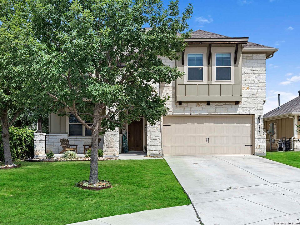 MUST SEE BEAUTIFUL HOME that is Tucked away on a quiet cul-de-sac in the sought-after Crossvine community, this stunning two-story home offers the perfect blend of space, style, and comfort. With 4 bedrooms and 2.5 baths, the layout is thoughtfully designed to meet a variety of lifestyle needs. The main level features a spacious primary suite, soaring ceilings, and large windows that fill the home with natural light. The open-concept living area is anchored by a cozy fireplace and flows seamlessly into a chef's kitchen complete with a large center island, granite countertops, stainless steel appliances, gas cooking, breakfast bar, and designer tile backsplash. A formal dining room adds the perfect touch for hosting guests or holiday dinners. Upstairs, a generous loft offers the ideal space for a game room, media area, or second living space, along with three roomy secondary bedrooms. Step outside to a covered patio and expansive backyard-perfect for summer BBQs, entertaining, or just relaxing in your private outdoor retreat. Conveniently located just minutes from Randolph AFB, major highways, and local shopping, this is one you don't want to miss. Schedule your private showing today!