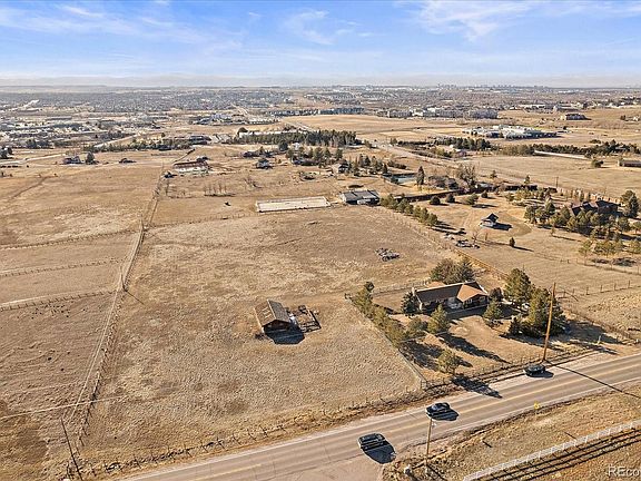 Opportunity awaits!! Just minutes from Downtown Parker, but outside of city limits, on 5.73 acres, with INCREDIBLE MOUNTAINS VIEWS this walkout ranch with a barn is a once in a lifetime offering. The 2500 square feet of living space could be a beautiful remodel or the anchor of the home with plenty of space for an addition and expanded outdoor living spaces. The two stall horse barn and fenced perimeter provides the space and opportunity to have your horses near by! Don't miss this incredible opportunity to own gorgeous land with views of Pike's Peak, Mount Evans and Long's Peak in Parker, under $1m with spectacular potential!