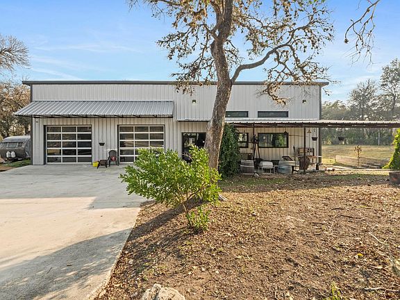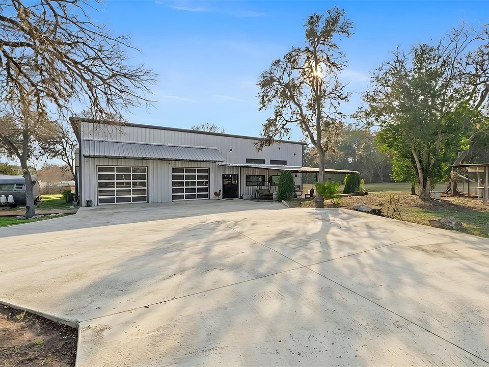 One-of-a-kind metal building situated on 1.5 private acres with a secluded drive, just minutes from Circuit of the Americas and downtown Austin. Designed with a flexible split layout, this property offers exceptional versatility. One wing features fully air-conditioned garage space with soaring ceilings, a vehicle lift, and two oversized bay doors—perfect for car collectors, hobbyists, or specialty use. The opposite wing provides comfortable living quarters with an open-concept great room, two bedrooms, and two full bathrooms. The primary suite includes an en-suite bath, while the secondary bedroom is served by a separate full bath. High ceilings throughout enhance the open, modern aesthetic. The building construction allows multiple floorplans to accommodate end-user's specific taste. The private setting allows ample room for expansion or customization, making this an ideal car enthusiast’s retreat, private club, or distinctive live/work property in a highly sought-after location.