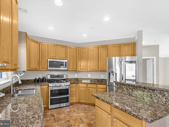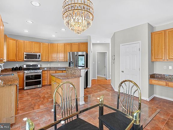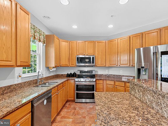 Beautifully refreshed brick-front Colonial on a quiet cul-de-sac in Bowie’s prestigious Fairwood community. This spacious home features newly refinished hardwood floors, new carpet, and fresh interior paint—ready for immediate move-in. The two-story foyer welcomes you with hardwood flooring and abundant natural light. The heart of the home is the upgraded island kitchen, featuring granite countertops, Samsung stainless appliances (digital front fridge & double oven), 42” cabinets, recessed lighting, pantry, and designer tile floors. Off the breakfast nook is a built-in desk area with extra cabinets—perfect for a home office or coffee station. A sliding glass door leads to a large, maintenance-free multilevel vinyl deck ideal for outdoor entertaining. The open family room offers a gas fireplace with oak mantel and tile surround, recessed lights, and berber carpeting. A half bath is conveniently located between the family and dining areas. The main level also includes a formal living room with decorative Colonial-style posts and a formal dining room with crown molding, transom windows, and a new chandelier—both finished with new carpeting. A mudroom with coat rack leads to the two-car garage with dual auto openers. A spacious main-level bedroom with vaulted ceilings, ceiling fan, new carpet, and private en suite bath with tile flooring and step-in shower is ideal for guests or multigenerational living. Upstairs features a catwalk hallway overlooking the foyer, 4 generous-sized bedrooms, and 2 full baths. The large owner’s suite includes crown molding, ceiling fan, walk-in closet, and luxury bath with dual-sink vanity, jetted tub with tile surround, step-in tiled shower, private commode, and tile floors. The fully finished walkout basement includes a large recreation room, custom wet bar with seating for 5, Berber carpet, recessed lighting, office nook, a sixth bedroom with walk-in closet, and a full bath with jetted tub and tile surround. The laundry room includes a smoked stainless front-load washer with sidekick & dryer, laundry sink, gas furnace, and gas water heater. Extras include a pool table, extra freezer, 2nd refrigerator at bar area and in-ground irrigation system for the front, back, and sides. Fairwood offers resort-style amenities: pool, ball fields, trails, tot lots & more—all in a prime Bowie location.