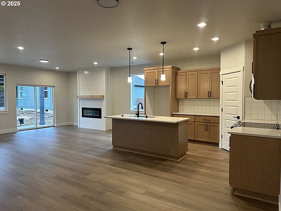 Welcome to your dream home! This stunning, brand new built single-story home is move in ready! With 1,499 square feet of thoughtfully designed living space, this three-bedroom, two-bathroom, gem of a home is ideal for families seeking comfort and practicality. As you step inside, you'll be greeted by an open floor plan, LVP and LVT flooring throughout, tile backsplash, quartz countertops and a large kitchen island. The open concept living area features an electric shiplap fireplace, and wood mantle. Retreat to the spacious primary bedroom to enjoy an en-suite bathroom with dual vanities, and large walk-in closet. Step outside to your large covered patio with electrical, an ideal space for year round outdoor entertaining or simply relaxing! With a two-car garage, you'll have plenty of space for vehicles and storage. This home is not just a place to live - it's a place to thrive! Don't miss this incredible opportunity to own this home. Schedule your private tour today to learn more about this home and our community. Community has other floor plans, lots + customizations available.