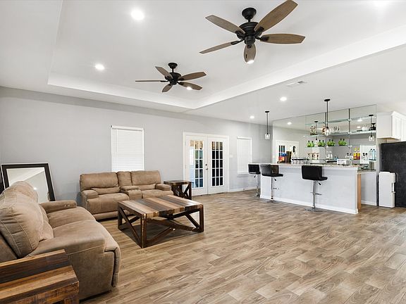 Discover true country living on nearly eighteen acres of wooded beauty in Kemp, Texas. This private rural homesite offers a peaceful setting with a long gated driveway, mature trees, and a picturesque pond that greets you as you enter the property. The land is mostly wooded, giving you natural privacy and endless opportunities for recreation, livestock, hunting, or future expansion. The home is designed for comfort and easy living, featuring an open-concept layout with wood-look tile throughout, neutral finishes, and plenty of natural light. The living area flows seamlessly into a spacious kitchen equipped with granite countertops, white shaker cabinetry, stainless steel appliances, and a stylish mosaic backsplash. A mirrored back-bar adds a unique touch for those who enjoy entertaining or hosting family gatherings. One of the standout features of this property is the oversized enclosed patio pavilion. Wrapped in warm wood tones and anchored by a beautiful stone fireplace, this space opens to the land and creates the perfect setting for year-round enjoyment—whether you’re hosting cookouts, celebrating holidays, or simply relaxing while taking in the peaceful surroundings. The home sits on a large concrete pad that provides abundant parking and room for equipment, trailers, or future structures. The surrounding acreage is a blend of rolling terrain and shaded pockets of mature trees, offering a quiet and private environment that truly embodies country living at its best.