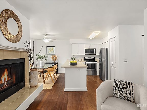 Experience resort-style living in this 2B/1.5B condo, ideally situated on the 2nd floor w/stunning views in Harbour Pointe neighborhood. Overlooking a tranquil pond & lush golf course greenery, this bright & airy unit boasts an open-concept layout, offering scenic vistas from kitchen, living, & dining areas. Cozy up by wood-burning fireplace or relax on private covered balcony w/storage closet. Hard surface flooring throughout, no carpet! Freshly painted. Two reserved parking spots. Residents enjoy access to amenities, including indoor/outdoor pools, sauna, gym, sports courts, BBQ area & walking trails. Centrally located just minutes from Boeing, beach parks, Mukilteo DT, ferry terminal, & major highways. Coveted Mukilteo SD! No rental cap!