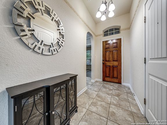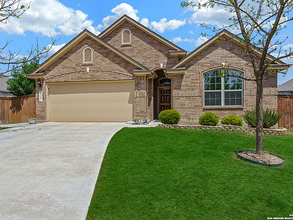 Welcome home to this charming brick residence nestled in the desirable Stillwater Ranch community of San Antonio. Designed for comfort and modern living, this beautifully maintained single-story offers a spacious open floor plan filled with natural light, high ceilings, elegant arched entryways, and stylish stone tile flooring throughout. The inviting island kitchen is perfect for both everyday living and entertaining, featuring granite countertops, 42-inch cabinetry, gas cooking, and seamless access to both covered and open-air patios - ideal for dining al fresco or relaxing outdoors. Unwind in the private owner's suite complete with a large, spa-like shower, while two additional bedrooms and a dedicated home office provide space and flexibility for today's lifestyle. An upstairs bonus room with half bath adds even more versatility - perfect for a media room, game room, or guest retreat. Step outside to enjoy an expansive backyard featuring a cozy fire pit and a spacious storage shed, ideal for a workshop, hobby space, or personalized "She Shed"/"Man Cave." This home also offers energy-efficient ** SOLAR Panels and smart home upgrades, providing comfort, convenience, and long-term savings. Experience the best of Stillwater Ranch - where community amenities, top-rated schools, and easy access to shopping, dining, and major highways come together for exceptional San Antonio living.