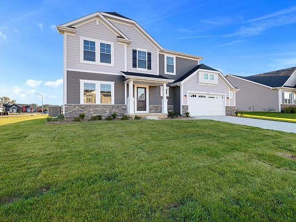 Ready now and available to show! Situated on a larger, corner lot, this Keystone has so much to offer! As you enter the home, the formal dining room is framed out with beautiful columns and wainscoting plus a tray ceiling. The butler pantry, which offers great extra entertaining space, leads you to the well appointed kitchen. A large island, beautiful cabinetry, quartz countertops, stainless appliances & Quick Step flooring finish off the kitchen! The sunroom is east facing, providing plenty of natural light in the morning. The deluxe owner's bathroom is a beautiful retreat with a tiled shower, garden tub and double bowl vanity. The laundry is conveniently located on the 2nd floor of the home. Walk in closets in all bedrooms, 2 closets in the mudroom plus a front hall closet offer tons of storage space! The Keystone is a high performance, energy efficient home. Enjoy peace of mind with a 10-year structural warranty, 4 year workmanship on the roof and industry-best customer care program