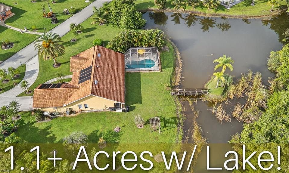 CAPTIVATING CASALS!! With its beautiful interior finishes, inviting private swimming pool, large 1.1 acre property and stunning lake with foot bridge and island, this home is sure to captivate you!!! Features of this beautiful home include soaring tall ceilings, lake views from nearly every room, new engineered wood floors throughout with cozy carpets in the bedrooms, updated grande kitchen with GORGEOUSLY UNIQUE HICKORY WOOD CONTERTOPS, gas range, stainless steel appliances and tiled backsplash; open concept family room with tall ceilings and tons of natural light, separate living room perfect for entertaining, beautiful master bedroom suite with fully remodeled en-suite bathroom featuring dual sink vanity and huge walk-in- shower with frameless glass enclosure, freshly renovated guest bathroom with new vanity and much more!! Additional features include, plantation shutters and/or custom window treatments throughout, upgraded fans and light fixtures, WHOLE HOUSE GENERATOR (2019), NEW AC (2021), NEW ROOF (2017), NEW POOL FINISH (2 to 3 years ago) and more!! Outdoors enjoy a super big circular driveway for plenty of parking, a large covered/trussed lanai for outdoor dining and entertaining, majestic solar and electric heated pool with peaceful views of the lake, fully irrigated lawn sourced from reclaimed water, 1.1 acre lot including a private foot bridge to your own little island, 500 gallon buried propane tank, and so much more!! Home is located in Bell Villa, a wonderful "hidden gem" community of custom homes on large lots that is both gated and guarded. Close proximity to the area's best shopping, dining, entertainment, Downtown Bonita Springs and white sand beaches!! Also, residents enjoy an optional amenity membership at Bonita Terra for only $400 per year which includes, 4 pools including a lap pool, pickleball, planned activities, events, gym, billiards, golf driving range, 10,000 sq. ft clubhouse, shuffleboard and more!! This property is priced to sell and offers a standout value opportunity!! Call for your private showing today!!
