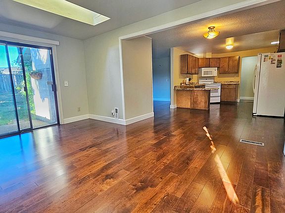 -Vaulted ceilings, skylights, and beautiful flooring. A slider provides access to a private backyard.