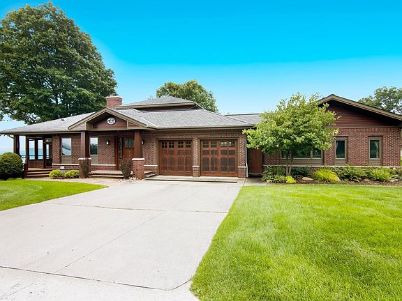Custom brick fireplaceDetached heated garageProfessionally landscaped groundsWorkshop areaFinnish saunaMature plantingsWaterfront brick home