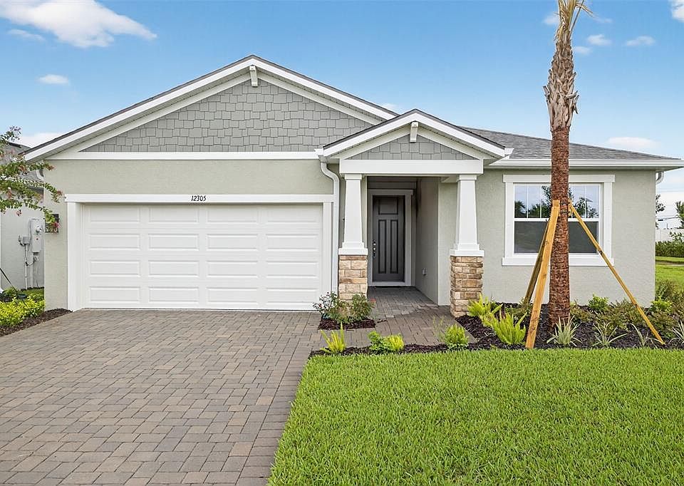 Under Construction. Welcome to the Glades with a Craftsman Elevation. This stunning home is located in the sought-after gated community of Windwater in Parrish, FL. This exceptional property offers 2,005 square feet of elegant living space, featuring 4 bedrooms, 3 full bathrooms, and a 2-car garage. As you step inside, you'll immediately notice the open and inviting floor plan, 8' door throughout. Enhanced by the beautiful Drayton 7x22 wood plank 70/30 Stagger tile that flows through the main living areas. The kitchen is a chef's dream, showcasing 42" Barnett Maple Latte cabinets. Exquisite Carrara Breve quartz countertops, providing both functionality and style. All appliances are included. The spacious master suite offers a peaceful retreat with a well-appointed en-suite bathroom, complete with dual sink raised vanity, and a glassed enclosed shower. The additional bedrooms are thoughtfully designed to provide comfort and privacy. Bedrooms 2 and 3 share a full hallway bath and bedroom 4 has a bathroom located just outside the bedroom door. Outdoor living is equally impressive, with a covered screen in lanai with Sliders perfect for entertaining or simply enjoying the serene surroundings. The expansive backyard offers plenty of room to add a pool, creating a tranquil and picturesque setting with that has no rear neighbors for privacy. Windwater is a beautiful community that combines the charm of suburban living with convenient access to schools, parks, shopping, and dining. Ready July/August 2025. All illustrations are artist concept. All dimensions and square footage are approximate. Photos and renderings are for illustrative purposes and should never be relied upon. The photos are from a furnished model home and not the home offered for sale.