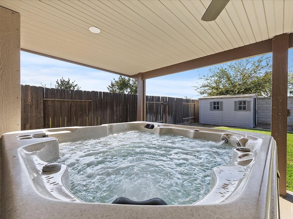 Welcome to this NW split-wing home featuring 3 bedrooms plus a versatile bonus room that can serve as a home office, playroom, or guest space whatever suits your needs, 2 baths, and 1,843 sq. ft. of living space! Step inside to find durable wood-look flooring, a bright kitchen with ample crisp white cabinetry, abundant storage, and appliances that are just 2 years new. The formal dining room seamlessly flows into the kitchen, creating the perfect setup for both entertaining and everyday convenience. A thoughtfully designed storage area provides an excellent solution for keeping everything organized and out of sight, adding to the home's functionality. Outside, enjoy a spacious backyard complete with a large, covered patio enhanced by recessed lighting and ceiling fans plus a relaxing spa that stays with the property. Ideally located near both elementary and high school, this home combines comfort, convenience, and smart design.
