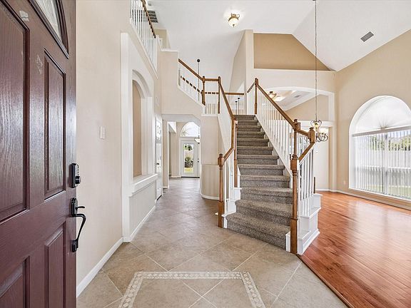 This move-in ready home is a true stunner! With its SOARING CEILINGS and MULITPLE OPEN LIVING SPACES you’ll be able to easily gather with family and friends. A grand entry welcomes you inside with a formal living/dining area and beautiful staircase. This area could be a great flex space to fit your needs! An effortless transition to the den and kitchen areas makes entertaining a breeze! NEW PATIO DOORS lead to the landscaped PRIVATE backyard with NO BACK NEIGHBORS. Upstairs, the high ceilings continue, and you’ll find a game room, guest bedrooms/bathroom, and a spacious primary suite. The primary suite features a large WIC, double sinks, and a separate garden tub/shower with beautiful tile work. Approx. ONE YEAR OLD: AC, ROOF, FRIDGE, STOVE! The 2-car garage has storage space and the long driveway can accommodate 4 cars. This well-maintained home is in Laurel Oaks where residents enjoy a pool, park, tennis courts, and more! Convenient to Bltwy 8, IH-45 and Hwy. 249. (all per seller)