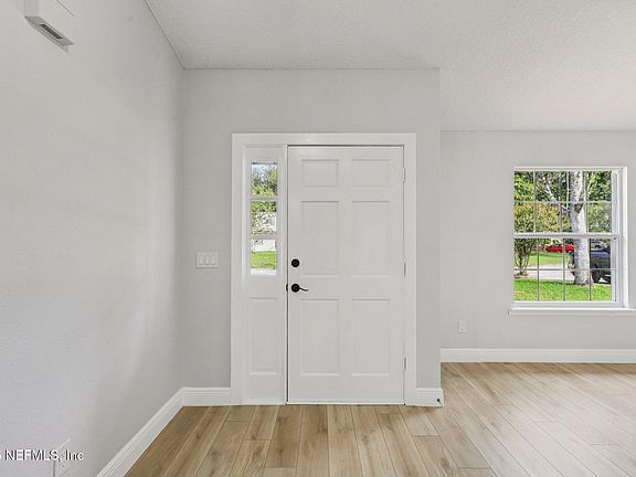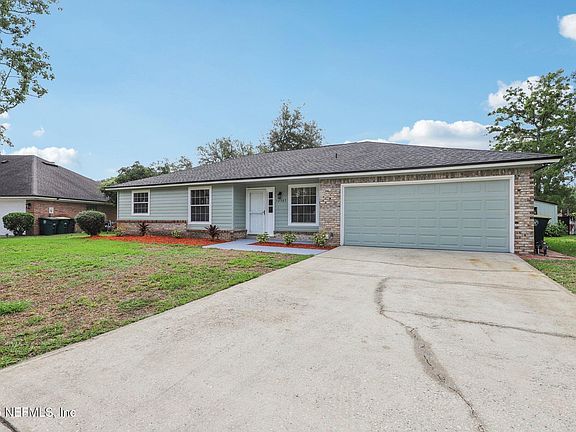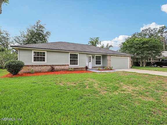 Gorgeous Brick Front remodeled 3BR/2BA home on beautiful lakefront lot! Everything in this home has been redone. New kitchen and baths. Open floor plan w/luxury vinyl plank floors & knockdown ceilings. All new baseboards, doors & lighting fixtures throughout. Gourmet kitchen with loads of 42'' cabinets, tile backsplash, pendant lights, SS appliances, quartz countertops & wine fridge. Great room w/vaulted ceilings & fireplace. Primary Bedroom is large w/ensuite bath to include beautiful tiled shower, new cabinet & lighting. Large Florida Room w/vinyl windows & split AC/Heat unit. Inside laundry room. Lanai & garage have Epoxy Floors. Lot is over 1/2 acre. Great location close to many restaurants & shopping. Quick access to I-95, I-295, Baptist & Ascension St. Vincent's Hospitals. Square footage includes Florida Room. This listing contains Virtually Staged Photos Roof 1 year old, AC approx 5 years old.