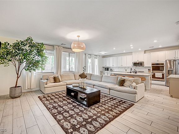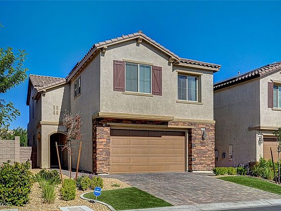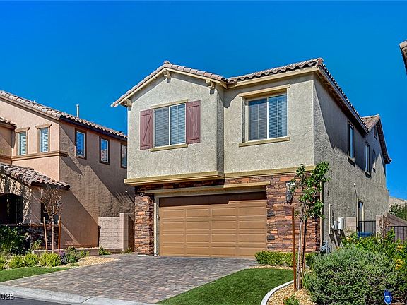 Step into this spacious, contemporary home in the prestigious gated community of Southern Highlands. This 2,638 sq. ft. residence blends modern design with high-end upgrades offering the feel of a model home without the wait of new construction. Enjoy open-concept living with sophisticated tile flooring throughout the first floor, a chef-inspired kitchen featuring quartz countertops, stylish backsplash, butler's pantry, and upgraded hardware. The large upstairs loft adds versatile space for work or play. The luxurious primary suite includes a private balcony with breathtaking mountain views, a spa-style bath with a soaking tub and separate shower, and a generous walk-in closet. Outdoor living shines with a full covered patio and balcony, a private backyard with synthetic turf, and no rear neighbors for added privacy. Other upgrades include a tankless water heater, reverse osmosis system, epoxy-coated garage, and beautiful stack stone and paver finishes throughout the exterior.