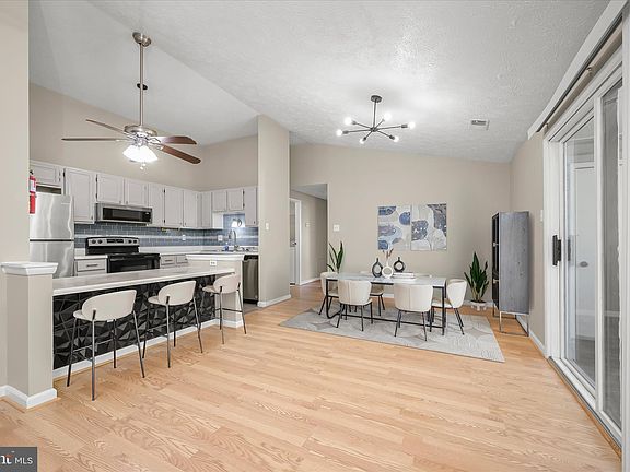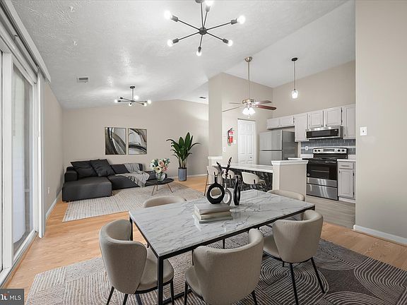 Beautifully updated 2 bedroom, 2 full bath, top-floor condo in the sought-after Knolls at North Lake community! This sun-filled, top floor, yet private unit, features an open floor plan with vaulted ceilings, stylish flooring, modern lighting, and designer finishes throughout. The living and dining areas showcase elegant flooring and sliding door access to a private balcony with serene, tree-lined views and additional storage. The recently renovated kitchen features an oversized island breakfast bar with a striking accent detail and boasts countertops, modern glass tile backsplash, LVP flooring, and new stainless steel appliances. The spacious primary suite includes a walk-in closet and a private full bath. A second bedroom, hall bath, and in-unit laundry room with new washer & dryer complete this fantastic home. Enjoy a prime location across the street from beautiful Gunners Lake and hiking trails, close to shopping, dining, and entertainment. Just minutes away from 1-270, 1-370, ICC/200 and shady grove metro train station. Owner assigned parking and ample unassigned visitorparking. A perfect blend of comfort, style, and convenience!