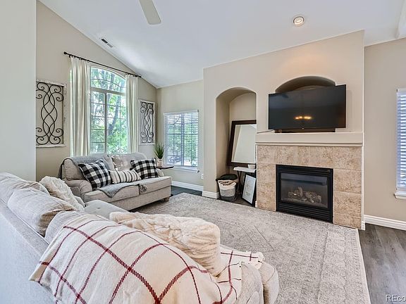 Welcome to this stunning 2-bed, 2-bath townhome that combines comfort and style! Enjoy newly installed luxury vinyl flooring, plush upgraded carpet, and soaring high ceilings that flood the space with natural light. Relax by the cozy fireplace in the spacious living room or step onto your private balcony for a breath of fresh air. The open dining area is perfect for entertaining, and the in-unit laundry (washer/dryer included!) adds ultimate convenience. Just steps away from shopping, dining, and vibrant local spots. Community perks include a sparkling pool, park, and beautifully manicured grounds with ample parking. This is Highlands Ranch living at its finest—don’t miss out!