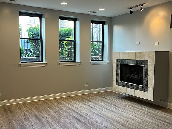 Beautiful 2 bed 2 bath garden unit newer construction condo located on a coveted block of 46th St in the heart of Kenwood. The street has a winding bend that is loaded with a mix of jaw-dropping gray stones, classic Chicago architecture and new construction. This spacious unit is flooded with natural light, tasteful finishes, and generous storage. As you enter, you walk into a spacious living/dining room combo with a cozy fireplace. The kitchen is large enough to accommodate multiple cooks and features granite countertops and stainless steel appliances. Huge primary bedroom features a walk-in closet, ensuite spa bathroom with double vanities, separate soaking tub and shower with multiple body sprays. Secured carport parking space is included in rent. Walking distance to Lake Michigan, University of Chicago, CTA, Metra, lakefront trail, grocery stores, etc. Welcome home!