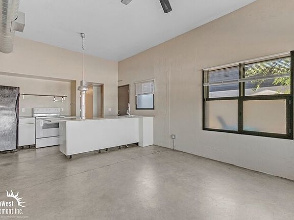 Charming 1Bdm 1Ba Unit in the Heart of Phoenix. Step into a residence where industrial modern design meets urban convenience. This thoughtfully crafted duplex blends vaulted ceilings, polished concrete floors, exposed ductwork, and steel-accent details to create a distinct and stylish living environment. The unit features a versatile additional room ideal as a den, home studio, or second bedroom offering flexibility to suit your lifestyle. The kitchen is equipped with stainless-steel stove/oven and refrigerator for seamless function and form. Outside, enjoy both a generous front patio and a rear patio plus access to a large shared backyard perfect for indoor-outdoor living, entertaining, or quiet moments. Located in central Phoenix, you're just minutes from dining, entertainment and amenities, making this home as practical as it is polished.Water/Sewer/Trash included. This property allows self guided viewing without an appointment. Contact for details.