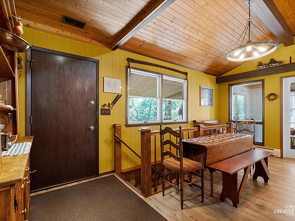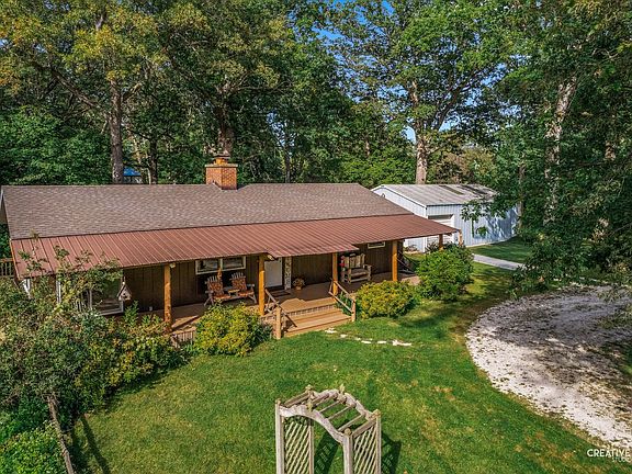 Welcome to the North Woods. The woods just north of Sandwich that is. We are proud to offer this unique ranch home on the northwest edge of Sandwich. Over looking the Somonauk creek. You can't help but falling in love when you pull up to the big country front porch on this well maintained 2 bedroom and 2 full bath home. With a full walkout basement. With approx. 1300sf per floor. This setting is just beautiful. Enter front door and you will think you were up in Northern Wisconsin. With the rustic decor. And the brick fireplace warming the Large Living room and the cute as can be kitchen. Plus the 2 cozy bedrooms with ample closet space and a main floor full bath. You must check out the heated porch overlooking the deck and the creek is right before you. In the walk out lower level there is a family and another enclosed porch that you can make into your own extra special space. Plenty of room down there for another bedroom and it already has another full bath on the floor. For all your cars, trucks and toys. We offer a 24'X36' heated pole building. Plenty of space to add onto the home or outbuilding, maybe have some animals. Such a quiet and serene location, just outside town and so close to everything. With wildlife everywhere. This setting and location can only be appreciated by walking the grounds, touring the home, and just sitting on the front porch and relaxing. You do not have to drive hours to the north for a place like this, just drive to 1231 Hartman Trail, Sandwich.