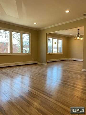 Bright and Sunny 3 Bedroom; 2 Full Baths; Large Living Room; Formal Dining Room; New Kitchen with granite counter-tops and stainless steel appliances; Master Bedroom/New Master Bathroom; 2 bedrooms; New Full Bath; First floor of a 2 family home; Heat/Hot water Included; Central Air; Walking distance to public transportation and markets; Apt faces east/west; 1 car garage and driveway space included