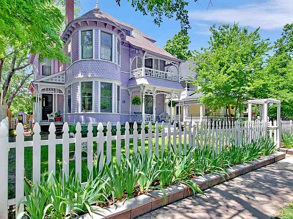 This home was built by pre-eminent architect William H. Sternberg in 1885 for Russell Harding, superintendent of the St. Louis Railway. It is listed as a National Historic Landmark and qualifies as a contender for a Kansas Historical Grant for exterior preservation. The home features an ornate Eastlake style staircase in the entry as well as two faux painted slate fire mantels at the decorative fire places, two sets of pocket doors and elaborate door knobs, hinges and hardware throughout. Carefully restored to preserve the beauty of the wood trim around the windows and doors, the curved plaster walls and the wood floors, this home also has new zoned HVAC systems. The kitchen is a blend of modern convenience with all new appliances (including microwave oven and refrigerator) and the period touches of country white cabinets and wood topped island. The pantry features an open door to the formal dining room. Listed by the county as a half story, the attic is unfinished but offers storage and a cute corner for a desk. The home is being sold completely furnished and all of the personal property that is there will stay.